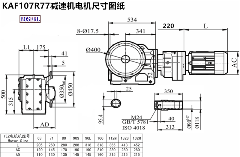 | KAF107RF77電機(jī)減速機(jī)型號(hào) | KAF107R77DT71MS4BMG | KAF107RF77DE63M4BMG | KAF107R77DR80M4BMG |